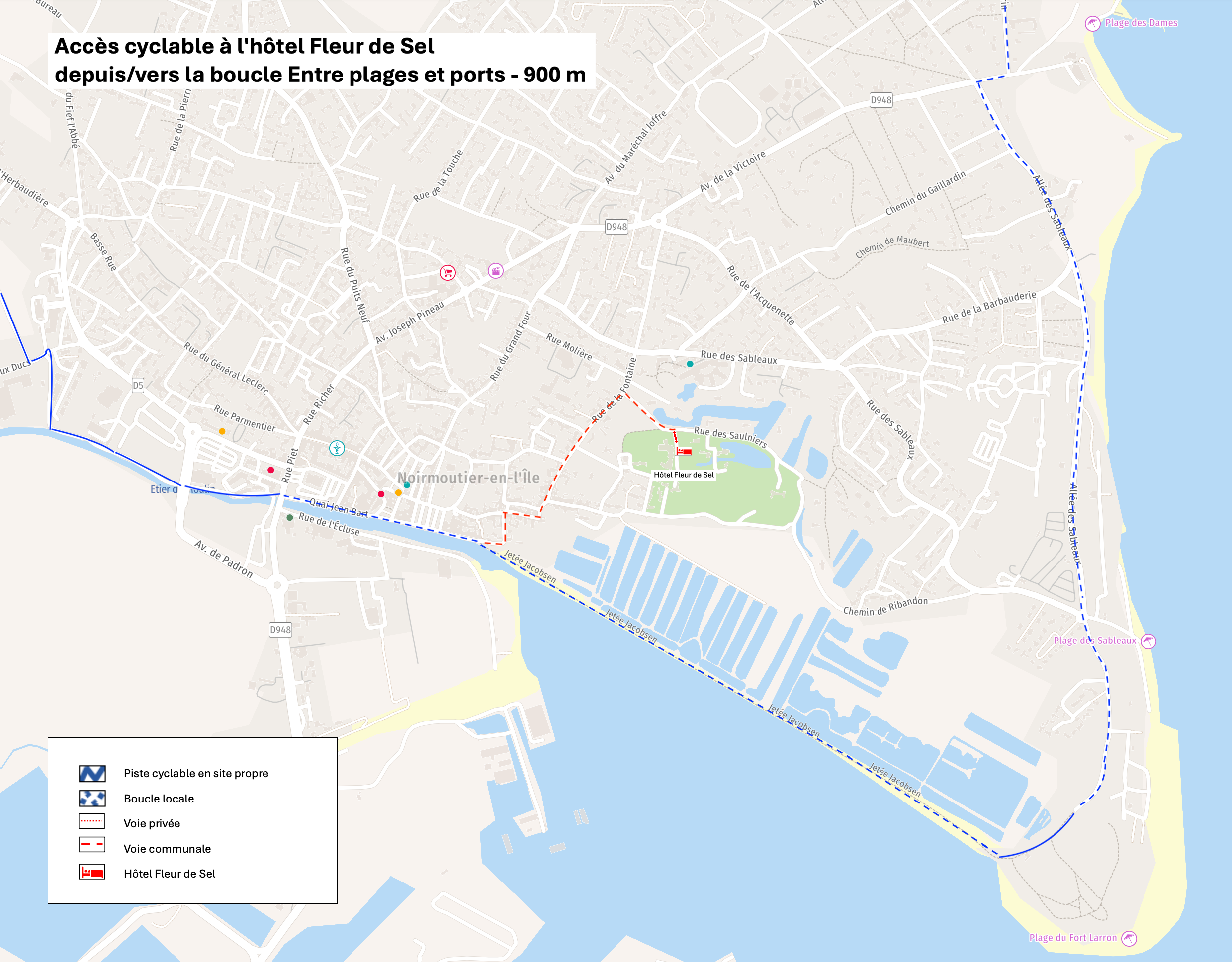 To make your arrival easier, we provide an interactive map to help you plan your cycling route to the hotel, locate the island’s bike paths, and organise your stay with complete peace of mind.